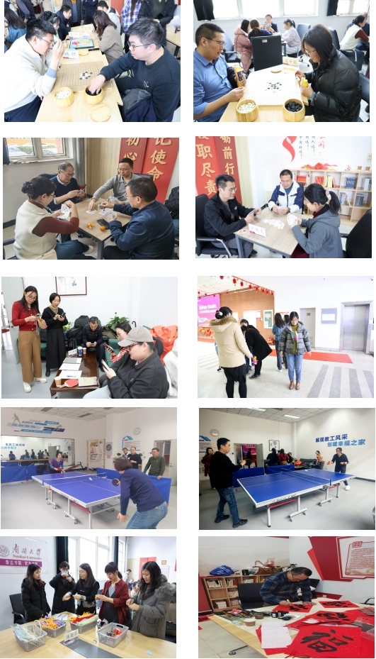 赛场上,教职工们热情高涨、各展所长,尽显风采。棋类比赛中,选手们凝神静气、深思熟虑,在棋盘上排兵布阵、斗智斗勇,展现出高超的棋艺与沉稳从容的心态;乒乓球赛场上,选手们步伐灵动、挥拍迅猛,攻防转换间尽显竞技魅力与拼搏精神;“学习强国”知识竞赛中,大家反应敏捷、答题精准,充分展现了扎实的理论功底与良好的学习风貌。体验区内,老师们或挥毫泼墨书写春联福字,或专注编织中国结、绒花,在传统手工艺的创作实践中感受中华优秀传统文化的独特魅力。
