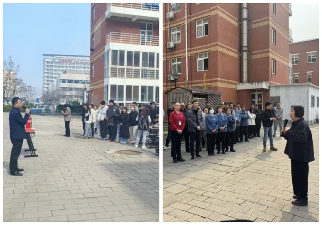 12时40分,演练进入动员与讲解环节。田在宁副院长作动员讲话,结合实验室安全事故案例,讲解常见实验器材起火时的处置方法,提醒师生正确选择消防器材,并强调火灾初期冷静应对的重要性。